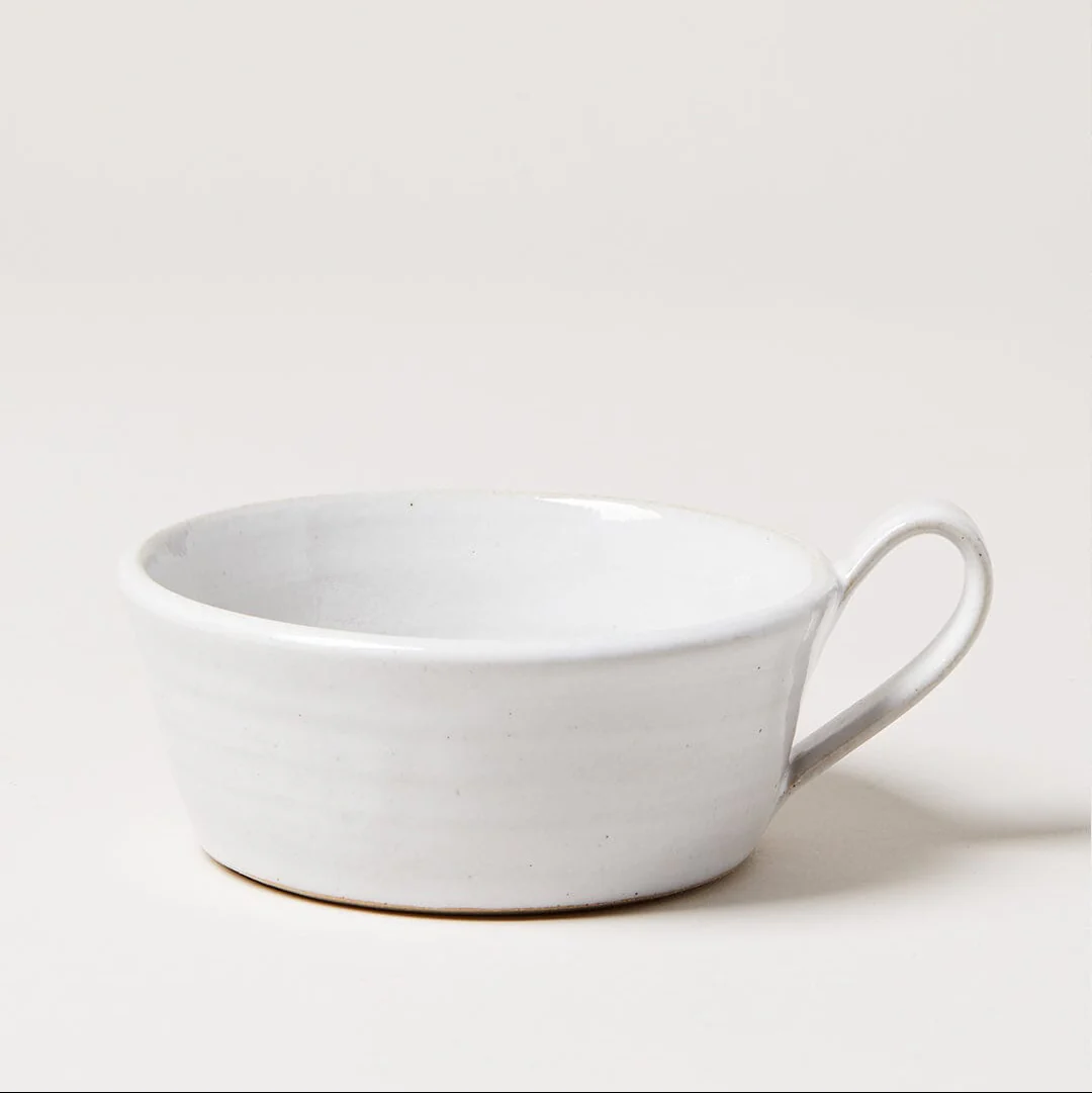 Main Description: Handcrafted in Woodstock, Vermont, the Silo Soup Mug is what we reach for when craving soup, stew and chili. It’s also great for a big pour of hot cocoa. We especially like the roomy size (for generous portions) and comfortable handle for easy transport. Farmhouse Pottery’s Silo Collection, featuring a white glaze and rustic base, is a tribute to silos (and their heritage and craftsmanship) that are found throughout Vermont farmlands.