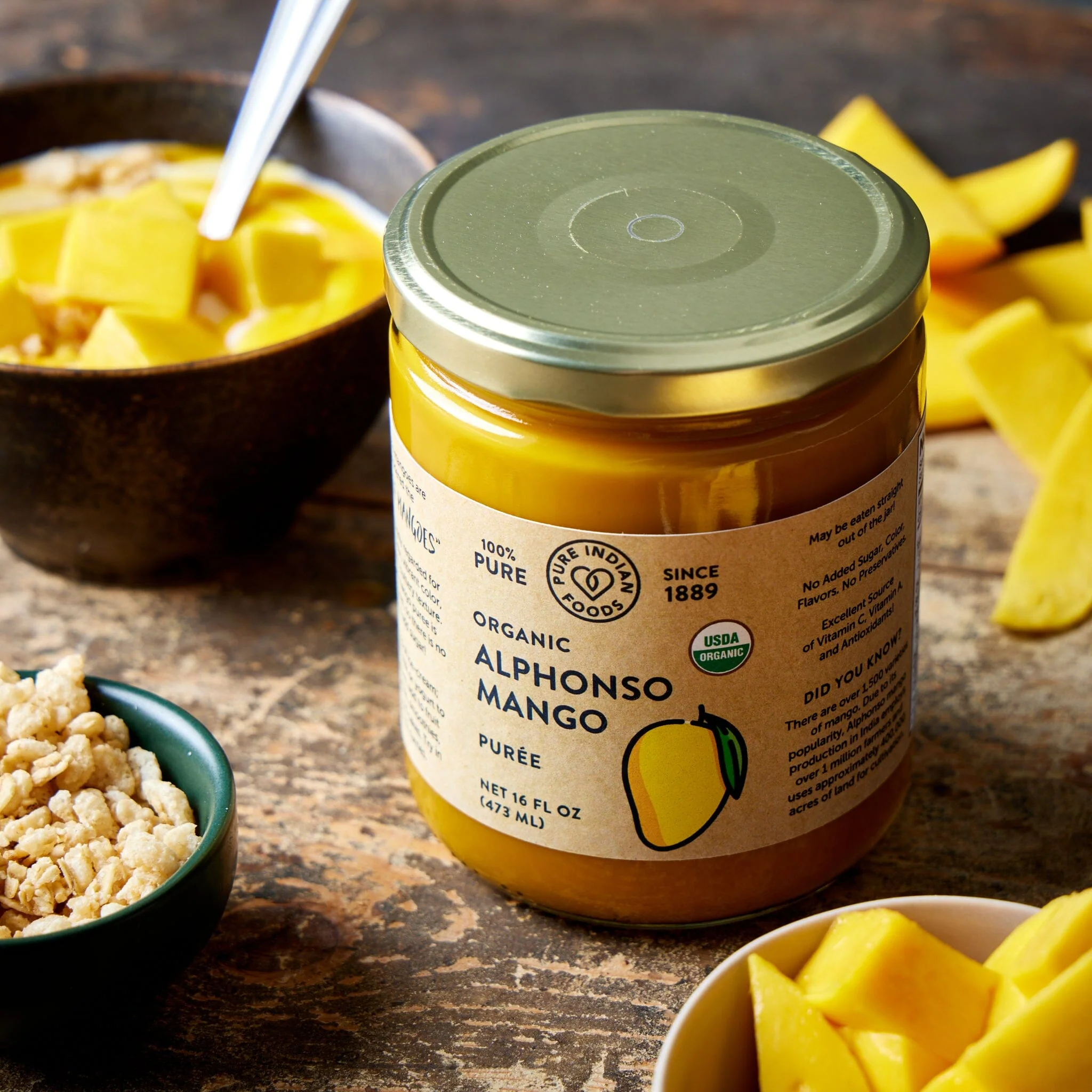 Rarely have we seen a mango puree in supermarkets and, if we do, it’s often full of sweeteners and additives. Made from Alphonso mangoes, which are renowned in India for their natural sweetness and buttery-smooth texture, this puree contains no added sugar or preservatives—it’s just pure, juicy mango. About five fresh mangos are packed into every jar of this luscious puree and its silky texture is pourable, yet decadent like yogurt, and has a rich, bright flavor that balances sweet and tart, akin to snacking on refreshing mangoes at their peak season.