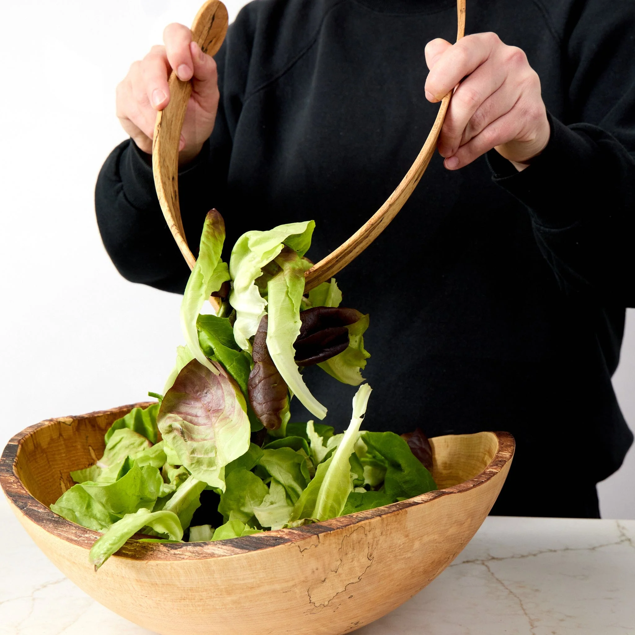 The spalted maple Tossers adds elegance to hosting or weeknight dinners. We use them to serve all sorts of salads, like our Snap Pea Salad with Feta, Lemon and Mint and Apple and Fennel Salad with Candied Pecans, and other side dishes.
